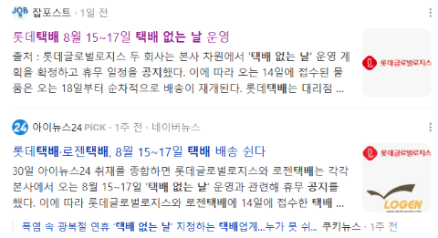 ❗8월 16일(토) : 택배 없는 날